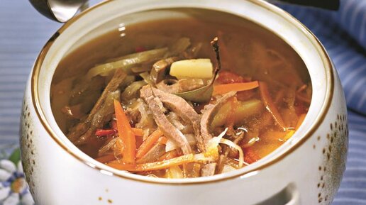 В заключение, "Овощной суп с говяжьим языком" – классическое русское блюдо, которое пользуется популярностью уже много лет. Его обильный вкус и аромат делают его идеальным выбором для любителей супов и традиционной русской кухни.