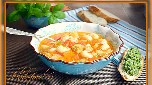 Овощной суп с песто – вкусное и сытное блюдо, которое сочетает в себе свежие овощи и ароматное песто. История этого супа уходит корнями в итальянскую кулинарию, где песто, состоящее из базилика, оливкового масла, чеснока, орехов и сыра, является популярным соусом.