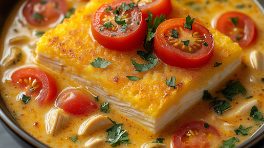 Сытный и ароматный суп, сочетающий нежную курицу, томатную основу и сырную нотку. Идеально подходит для обеда в холодный день.