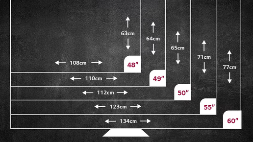 Очень часто при покупке мебели и расчету пространства в квартире или на офисе требуется понимать сколько места занимает телевизор. Все знают его диагональ в дюймах, но не многие знают какова его ширина и высота в сантиметрах.Данная таблица создана для упрощения конвертирования диагонали экрана в высоту и ширину в сантиметрах.ВАЖНО! Данные в таблице и диагональ экрана показывает только размер самой матрицы исходя из соотношения сторон 16:9 без учета рамок телевизора...
