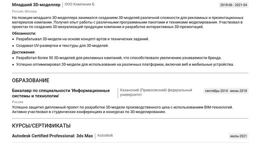 Пример резюме 3D-моделлера 2025 - готовые примеры
