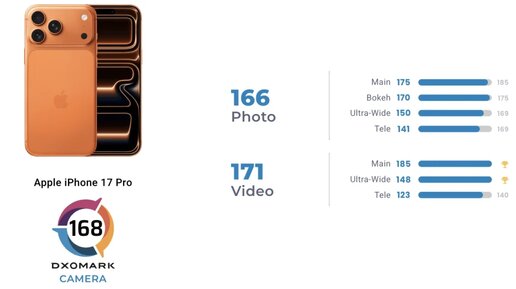 iPhone 17 Pro занял третье место в рейтинге DxOMark