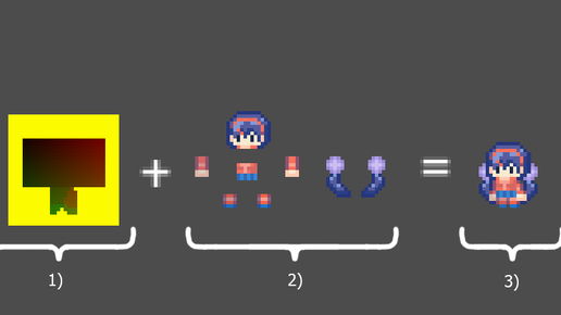 Добрый день! В этой статье я расскажу о том, как я в своей игре сделал систему пиксельной анимации, которая позволяет один раз нарисовать одну анимацию, и использовать ее когда нужно будет добавить игроку новый облик(систему скинов), не перерисовывая заново каждый кадр анимации. И так, сначала разберем как же обычно происходит добавление анимации для персонажа в 2D играх в стиле пиксель арта. Она состоит из картинки, в которой собраны все кадры анимации. Когда нужно будет добавить нового персонажа придется рисовать каждый кадр анимации вручную...