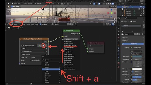 Часто при рендере готовой 3D модели нужен мягкий рассеянный свет или даже весь фон целиком, для этого можно скачать бесплатно и установить готовые решения. Я брал свои фоны по этой ссылке: https://polyhaven.com/ Там нужно зайти в раздел HDRIs и скачать понравившиеся фоны. Дальше, в blender нужно открыть вкладку shading. Выбрать world в строке сверху главного поля (убедитесь так же, что у вас стоит галочка в строке use nodes)...