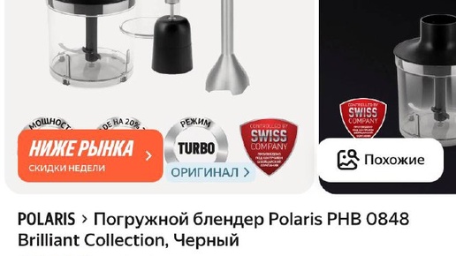 Погружной блендер Polaris PHB 0848 Brilliant Collection, Черный https://market.yandex.ru/cc/7xcdr8 ⭐️BER103-AF — минус 100₽ на один любой заказ от 5000₽ ✅ Подписаться 🔣 Промокоды тут