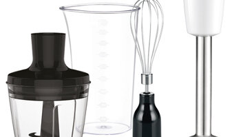 Блендер комплектуется двумя насадками: венчиком для взбивания и погружной насадкой-измельчителем для приготовления пюре и смузи. Также в набор входит стакан-измельчитель...