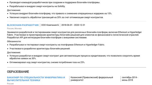 Пример резюме blockchain-разработчика 2025