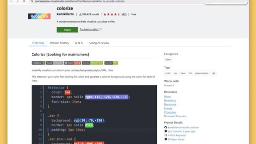 Colorize – это расширение для VSCode, которое значительно упрощает визуализацию цветов в ваших CSS-файлах...