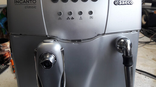 Всем здравствуйте! Сегодня у нас на ремонте кофемашина Saeco Incanto S-class с диагнозом не меле кофе. А по факту при приготовлении кофе, кофемолка начинает работать полторы-две секунды и выключается, помол сбрасывает в контейнер для отходов и на этом всё заканчивается. Молотый кофе варит. Так выглядит эта кофемашина. Здесь установлен варочный блок Одной из причин такой поломки становится забивание кофемолки. Так-же в некоторых случаях неисправность датчика холла и самого мотора кофемолки. Что у нас произошло мы и будем сегодня разбирать...