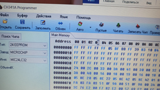 Ранее рассказывал как бесплатно разблокировать RCD310 Blaupunkt. Сегодня расскажу вам как разблокировать штатную магнитолу RCD310 Delphi выпускалась для Европейского рынка. Если у Вас возникли сложности с ее разблокировкой, то при помощи простого программатора код к ней можно извлечь всего за пару минут. Для этого необходимо снять с магнитолы верхнюю крышку и привод дисков. После этого найти на плате микросхему памяти 24LC32. Ее содержимое считывается программатором CH341B. При чтении выбираем тип памяти 24С32...