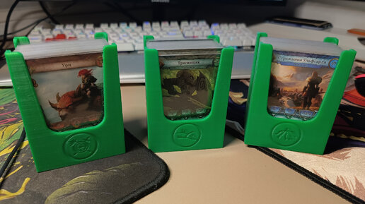 Я тут давеча решил улучшить условия хранения для своего картонного сокровища. Но прежде, нужно рассказать и показать как я хранил свою коллекцию до этого. Изначально, карты я хранил в коробках из-под бустеров (я думаю, что многие так делают и я не стал исключением). Карты я храню в протекторах, ибо меня прям трясти начинает, когда я играю картами без протекторов, ибо вижу, как карты без них изнашиваются прямо на глазах. Поэтому, вся основная коллекция у меня хранится в простых протекторах, а на выездные мероприятия я стараюсь их "переодевать" в протекторы посерьёзнее...