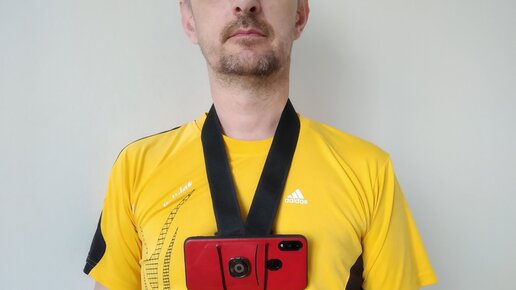 Моя разработка. Для этого приспособления, для съёмки на смартфон, понадобится: ремешок нужной длины и проволока (не очень толстая). Как согнуть проволоку, и сделать каркас крепления, можно увидеть на фото ниже. Длина ремешка должна быть такой, чтобы был запас. С расчётом, что будете его применять по верх верхней одежды. Либо сразу применить регулируемый по длине ремень. Стальная проволока должна быть не сильно калёная и не очень мягкой. Чтобы поддавалась сгибанию и в тоже время прижимала и удерживала ваш смартфон в этой конструкции...