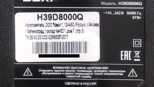 Телевизор DEXP H32E8000Q нет изображения Ремонт