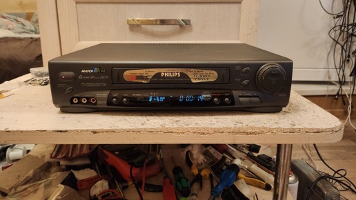 😇Хотя стоп, какая же это дичь, скажут любители VHS, это же шести головый Hi-Fi видак, топчик из 1998-го года. 😎Вот и владелец, решил освежить старичка, поэтому делаем шиномонтажку и старичок действительно оживает. Ну надо же, всё работает и даже ничего из пластиковых деталей пока не треснуло.😀Пущай ещё поработает какое то время, есть мнение, что это живучая протяжка, так что может ещё и достаточно долго поработает...