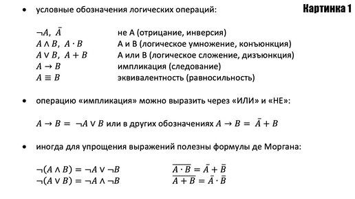 Начнем с логических выражений. Логическое выражение в программировании — конструкция языка программирования, результатом вычисления которой является «истина» или «ложь». Таким образом, это бинарные (1 или 0 соответственно) утверждения, на основе которых компьютер принимает решения. Бинарное утверждение — утверждение, на которое может быть ответом либо однозначное "верно", либо однозначное "неверно". Современный компьютеры построены на бинарной логике, то есть оперирует с битами (способными принимать значение либо 0, либо 1)...