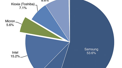 Согласно данным аналитических компаний TrendFocus и Wells Fargo, в III квартале 2021 года Samsung значительно обогнала других производителей по суммарной ёмкости отгруженных SSD корпоративного класса, заняв половину рынка. Два года назад, в III квартале 2019 года, на долю Intel и Samsung приходилось около 35 % ёмкости таких SSD, а в отчётном квартале доля Samsung выросла до 53,6 %, тогда как у Intel она сократилась до 15,2 %. Пандемия COVID-19 вызвала резкое снижение темпов прироста в годовом исчислении...