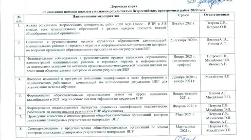 Дорожная карта подготовки школы