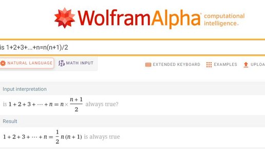 Метод математической индукции в Wolframalpha