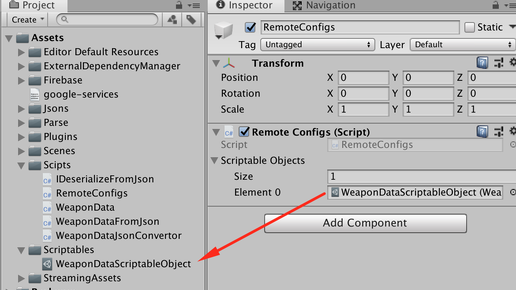 Целевая аудитория: начинающие разработчики Теги: Unity, ScriptableObject, Json, JsonUtility, Firebase Предыдущие статьи обязательные для прочтения. Вступление В продолжение предыдущей статьи, об удаленном обновлении данных, настало время разобраться с сервисом Firebase, благодаря которому мы будем хранить и получать наши конфиги для ScriptableObject. Firebase Ссылка на официальную интеграцию с Unity Перейдя по ссылке, вы получите инструкцию как создать проект в Firebase, все настроить и интегрировать SDK в Unity...