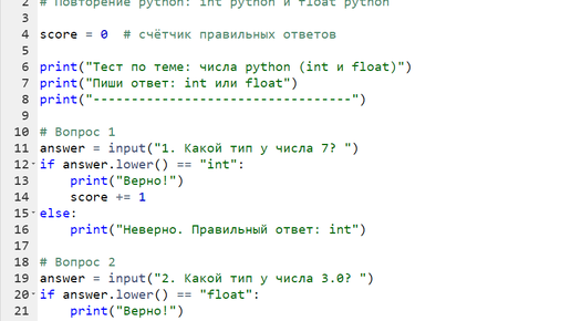 Урок 12-1. 🧠 Тест по Python (int и float) — в виде программы