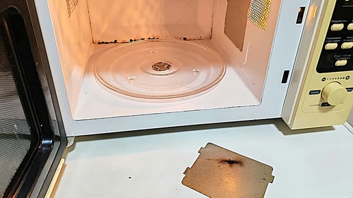 По мере эксплуатации слюдяной лист приходит в негодность. Первые признаки того, что в микроволновке прогорел защитный экран — искрение и отсутствие нагрева.
