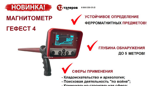 ружейный ствол, меч, авиабомба 2-5 метров. Магнитометр Гефест 4 не требует предварительной сборки и работает по принципу...