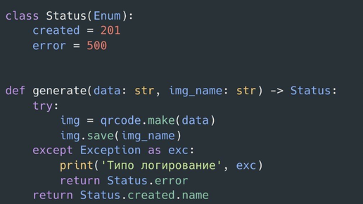 Сегодня покажем создание QR кодов. Для этого нам понадобится модуль qrcode, который используется для создания изображений с QR кодом. Все максимально просто, за нас по сути все делает уже написанный модуль. Выше на картинке мы сделали простую функцию generate, которая принимает какую-то информацию и название файла, в который нужно сохранить результат в виде QR кода...