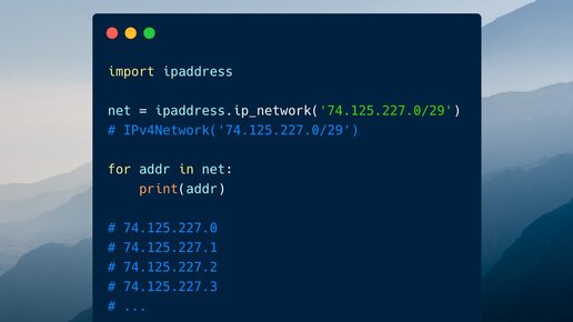Если вам приходится писать на Python программы для работы с сетью — это значит, что вам может очень пригодиться модуль ipaddress. Одним из вариантов его использования является генерация списка IP-адресов из диапазона адресов, заданных в формате CIDR (Classless Inter-Domain Routing, или бесклассовая адресация)...