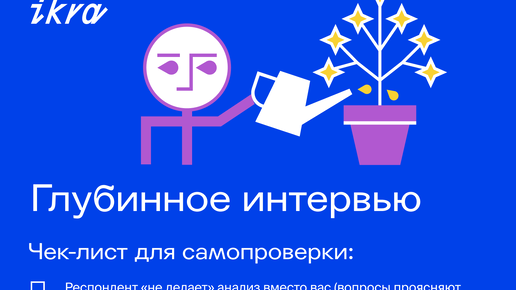 Эксперт: Евдокия Лебедева Контент-директор ИКРЫ и преподаватель на Курсе по контент-маркетингу. Когда мы говорим о дизайн-мышлении, часто упоминаем, что нужно провести глубинное интервью. Глубинное интервью или метод глубинного интервью – это метод качественных маркетинговых исследований в формате индивидуальной беседы с будущим или текущим пользователем нашего продукта. Интервью помогает выявить боли и потребности пользователя, которые можно закрыть через доработку сервиса или услуги. В отличие...