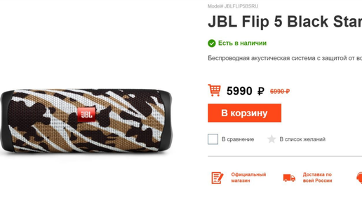 🔥Bluetooth-колонка JBL Flip 5 Black Star за 4792₽ ( ̶5̶9̶9̶0̶₽̶) в Harman Club