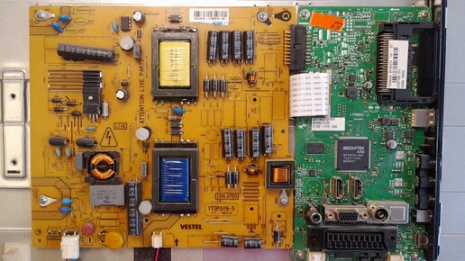 Всем здравствуйте! Сегодня у нас на ремонте телевизор Hitachi 32hxc01 с диагнозом не включается. По факту при включении в сеть индикатор дежурного режима горит красным , а при нажатии кнопки включения начинает перемаргивать с красного в синий. И что интересно, сначала три пачки перемаргивания с красного в синий с паузой примерно в секунду, а потом синий/красный без пауз и пока не включишь из сети. Вот такой дефект. Итак посмотрим на состав телевизора и померим напряжения. Блок питания 17ips19-5 Майна плата 178mb82-2 T-con Начнём с замеров напряжений на блоке питания...