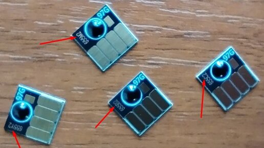 В этой короткой статье мы разместили видео по замене чипов на ПЗК 655 и фотографию с маркировкой чипов для правильной установки на картридж. Буква на каждом из чипов означает цвет картриджа. Это нужно иметь ввиду, когда будете клеить чипы. На видео ниже мы показываем, как заменить чип. Это делается очень просто. Достаточно отклеить с посадочного места старый чип, подцепив его острым предметом и приклеить новый, предварительно наклеив на него двухсторонний скотч. Приобрести перезаправляемые картриджи ПЗК HP 655 с чипами (БЕЗ ЧЕРНИЛ) 4 цвета можно в нашем магазине на ОЗОН...