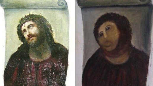 Круто когда можешь сказать, что громкое название твоей статьи это не кликбейт, а неискушенного читателя ждёт действительно небольшой фейерверк в мозгу от получения какой-то интересной инфы, знанием которой он сможет хвастануть перед корешами. Есть такая Фреска «Ecce Homo» (Се Человек), погружаться в библейские сказания мы не будем. Достаточно знать, что это изображение Иисуса Христа в терновом венке. Автором работы является Элиас Гарсиа Мартинес (1858 - 1934 г.г.) и выглядит она согласно канонам...