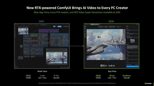 Компания NVIDIA объявила о доступности технологии RTX Video Super Resolution в составе бесплатного пакета nvidia-vfx для взаимодействия с NVIDIA VFX SDK при разработке приложений на языке Python. Также технология RTX Video Super Resolution стала доступна в виде узла для ComfyUI, узел может использоваться в рабочих процессах генерации и масштабирования видео вплоть до разрешения 4K. Источник изображения: NVIDIA, Wccftech Объявление совпадает с релизом инструментария App View для ComfyUI, который позволяет...