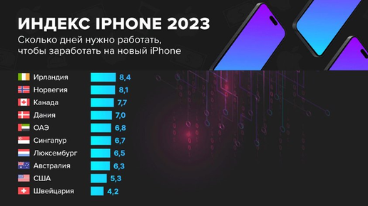 Индекс iPhone 2023. Быстрее всего купить айфон могут жители Швейцарии и США