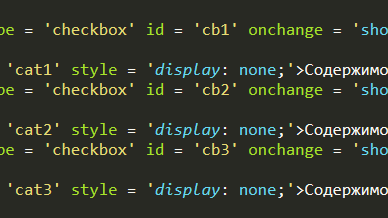 Простой и часто используемый скрипт, который, в общем случае, выполняет любые действия при изменении состояния checkbox. А в данном случае просто делает видимыми или невидимыми контейнеры в зависимости от состояния соответствующего checkbox...