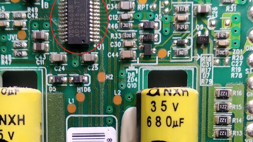 С жалобой - "нет изображения". Он включался, звук, управление есть. Проверка выходных напряжений блока питания показала, что БП исправен. Все в норме. Остается грешить на плату инвертора. ТВ достаточно старый и подсветка здесь ещё на лампах. Вот виновник. Проверяем напряжение питания на плате инвертора 24В. Напряжение питания 24В в норме. И предохранитель тоже). Но не было питания на 20 выводе микросхемы U1 OZ9966SN. Дальнейшая проверка показала обрыв резистора R34, через который поступает напряжение питания на микросхему...