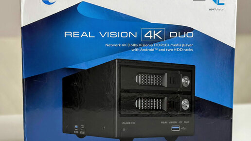 Несмотря на рост популярности онлайн-кинотеатров и стриминговых сервисов, количество людей, предпочитающих хранить мультимедийный контент у себя дома, остается весьма заметным. А в 2022 году их еще и прибавилось. Именно для таких старомодных киноманов и аудиофилов Dune HD выпустила плеер Real Vision 4K Duo, внутрь которого можно поставить целых два жестких диска объемом до 16 Тбайт каждый. Экстерьер плеера заставляет предположить, что из него получится и замена домашнему NAS’у. Давайте разберемся, что он может на самом деле...