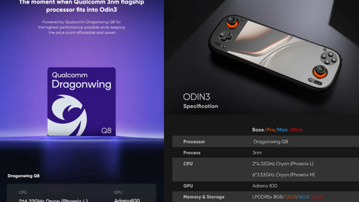 Компания AYN изменила название процессора на странице своего устройства Odin 3. Теперь эта игровая портативная консоль на базе ОС Android указана с процессором Qualcomm Dragonwing Q8 вместо Snapdragon 8 Elite после того, как издание Retro Handhelds сообщило, что AYN попросили исправить название во избежание путаницы. На текущей странице магазина AYN используется название Dragonwing Q8 во всех описаниях продукта. Согласно собственным материалам Qualcomm, Dragonwing Q8 входит в линейку продуктов и встроенных систем компании, в то время как Snapdragon 8 Elite — это версия для смартфонов...