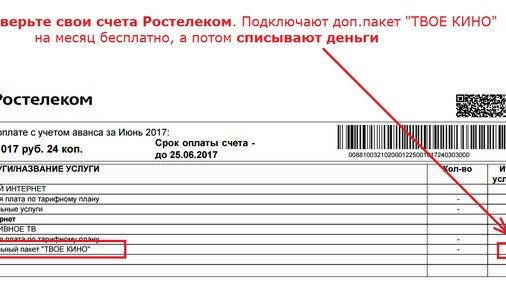Эта история произошла весной-летом этого года. Но может повториться снова. В июне многие пользователи Интерактивного ТВ от Ростелекома с удивлением узнали, что должны заплатить 135 руб. за пользование пакетом «ТВОЕ КИНО». А в августе им придет счет еще на 70 руб. — за услуги «Управление просмотром». Эти услуги весной подключились бесплатно, но после промо-периода услуги стали платными. Самое интересное, что до сих пор не все знают, что теперь платят за телевидение больше. Такая вот скрытая форма навязывания услуг...