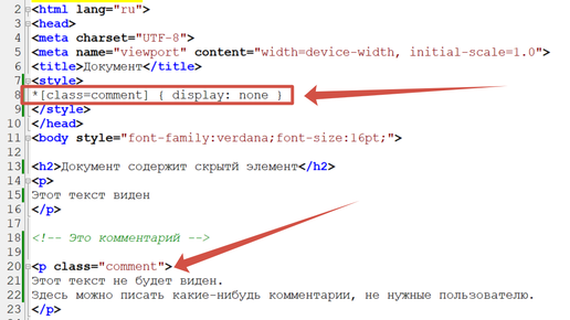 Ну вообще для решения этого вопроса в HTML есть комментарии: <!-- Это комментарий --> Однако, если вам очень сильно захочется использовать CSS для сокрытия какого-то блока, то и это возможно. Например, так: *[class=comment]...