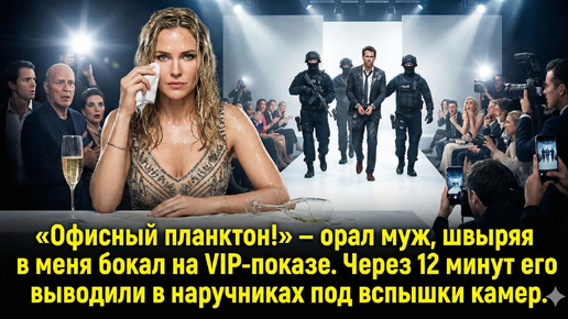 «Офисный планктон!» — орал муж, швыряя в меня бокал на VIP-показе. Через 12 минут его выводили в наручниках под вспышки камер