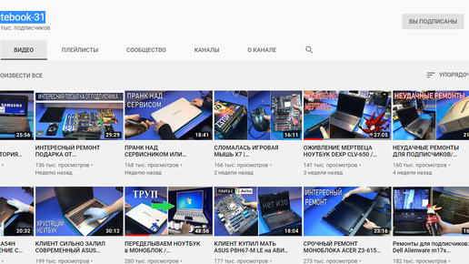 В этой статье я хотел бы рассказать о каналах на Youtube, которые связаны с IT тематикой. Это лишь мое мнение, возможно вам будет интересно. 1. Notebook-31 Этот канал показывает и рассказывает о буднях сервиса по ремонту техники (в основном ноутбуки). На канале масса видео, ребята показывают процесс от начала диагностики, пайки, замены комплектующих\узлов, до полного восстановления. Мне лично было очень интересно наблюдать как выпаиваются те или иные детали, какие нестандартные решения использует автор...