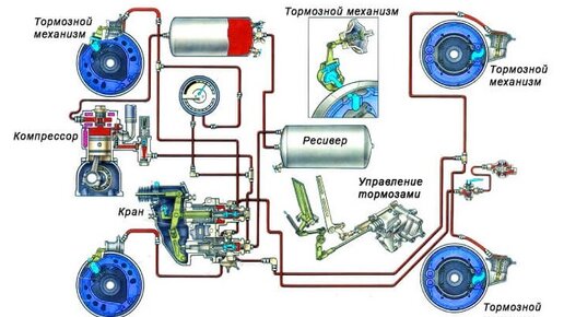 Кран растормаживания прицепа работает по достаточно простому принципу. Когда педаль тормоза отпущена клапаны управления тормозами прицепа становятся в положение перекрывающее магистраль ресиверов, при этом тормозные камеры имеют свободное сообщение с атмосферой. Проще говоря, подобное положение свидетельствует, что тормоза в данный момент бездействуют. Когда водитель жмет на тормоз следящее устройство производит закрытие выпускного клапана, в свою очередь открывая впускной. Таким образом сжатый воздух поступает в камеры через клапаны и ресивер производя торможение...