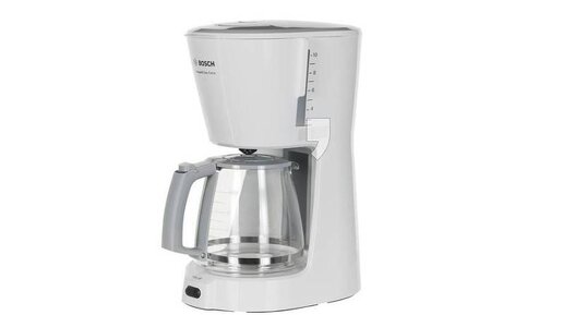 5 Bosch TKA 3A031/3A034 Топ открывает кофеварка начального уровня – Bosch TKA 3A031 / 3A034, которую можно приобрести в двух цветах: белый и красный. Невзирая на низкую стоимость, модель поддерживает подогрев кофейника и автоматическое отключение. Бак для воды рассчитан на 1.25 литров. Нагревательный элемент хороший, температура достигает 90 градусов. Стоит добавить, что это устройство имеет компактные размеры, стильный дизайн и имеет достаточно много положительных отзывов. Тем не менее, не стоит ожидать от кофеварки за такую стоимость непревзойденных результатов...
