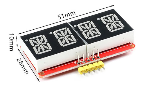 С помощью такого дисплея можно выводить буквы, а не только цифры Дисплей 0.54″ 14-segment LED HT16K33 представляет собой четырехразрядный 14 сегментный (15 сегмент — точка на каждом разряде) индикатор, которым управляет светодиодный драйвер HT16K33. Напряжение питания от 4.5 до 5.5 В, ток потребления в активном режиме до 2 мА, а режиме ожидания до 10 мкА. Уровни интерфейса связи с микроконтроллером – 5 В, не совместимы с 3.3 В. Управление осуществляется посредством интерфейса I2C на скорости до 400кГц...