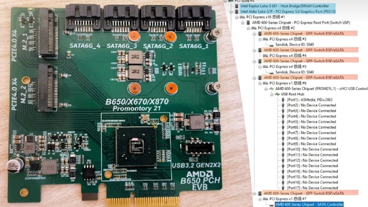 Чипсет AMD Promontory 21, использующийся в платах 600- и 800-ой серий под AM5 – как оказалось универсальный хаб, который через подключение по 4 линиям PCIe 4.0 может работать на любых материнках, даже от Intel. Энтузиаст wesd смог на его базе создать плату расширения, которая имеет два разъема NVMe PCIe 4...
