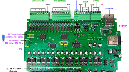 Добрый день, уважаемый читатель! Представляю вашему вниманию небольшой обзор еще одной китайской платы контроллера на базе ESP32 для реализации различных идей автоматизации всего и вся: KC868-A16 ESP32 home automation relay module. Основная статья на моем сайте: https://kotyara12.ru/iot/kincony-kc868-a16/. Там вы можете скопировать код прямо из текста. Также вы можете почитать обзор на новую версию этого контроллера A16V3: https://kotyara12.ru/iot/kincony-kc868-a16v31/ На этот раз мне попал в лапы один из контроллеров, выпускаемых довольно известным производителем – KinCony Electronics Co...