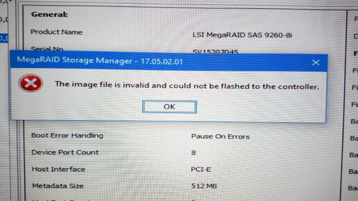 Ошибка прошивки контроллера LSI 9260 image file is invalid