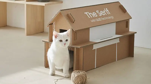 Животных мир No 10 как устроена коробка от телевизора Samsung, из которой можно сделать кошачий домик